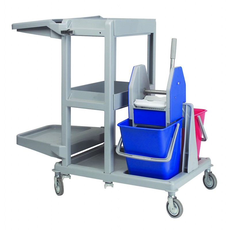 Carrello in plastica on 2 secchi 18 lt., strizzatore e coperchio per sacco.
