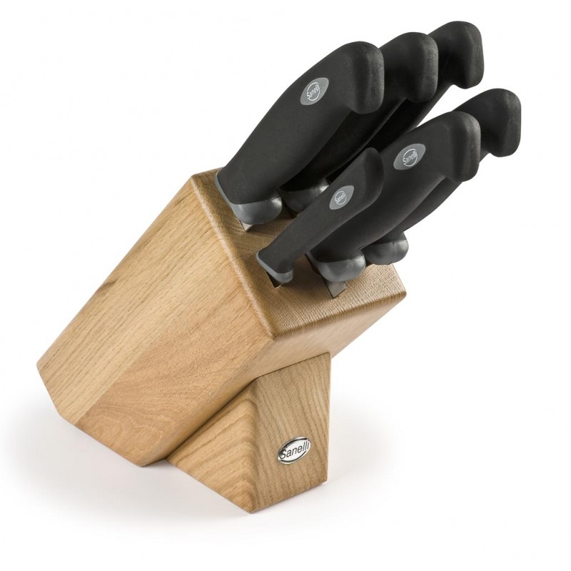 Ceppo Base Rovere 6 pz. Il classico e intramontabile ceppo in Rovere. La composizione base, comprende tutti i coltelli indispensabili per la cucina.