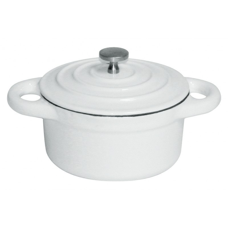 L'uso primario di queste casseruole è stufare e brasare, cuocendo a fuco lento. Queste versioni in miniatura sono più comunemente usate per contorni e singole porzioni cone stufato di carne e patate gratinate. Sono facili da pulire, durevoli e compatibili con tutti i piani di cottura standard, induzione e forni tradizionali. Ogni pezzo è dotato di un coperchio che serve per calore e umidità durante la cottura. La linea nera non è smaltata e deve essere asciugata subito dopo il lavaggio. La finitura è ruvido/opaca. La linea bianca ha un doppio strato di smalto con finitura lucida. I pomoli dei coperchi sono resistenti al calore fino a 400 gradi. Cm.10 h.5 lt.0,25
