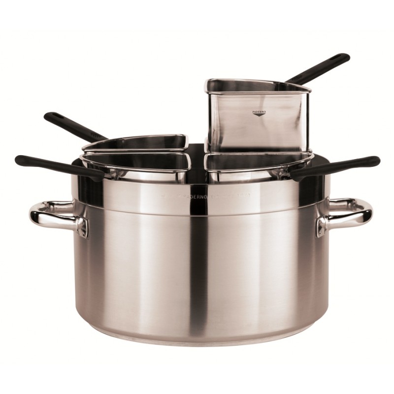 Colapasta a spicchi 1/4 in acciaio inox, rete, con manico in silicone . Adatto alle casseruole da 36 cm h.23