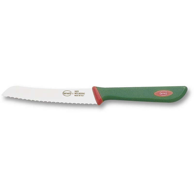 Lunghezza lama: 12 cm.Coltello semirigido, seghettato per pomodoro e pane.