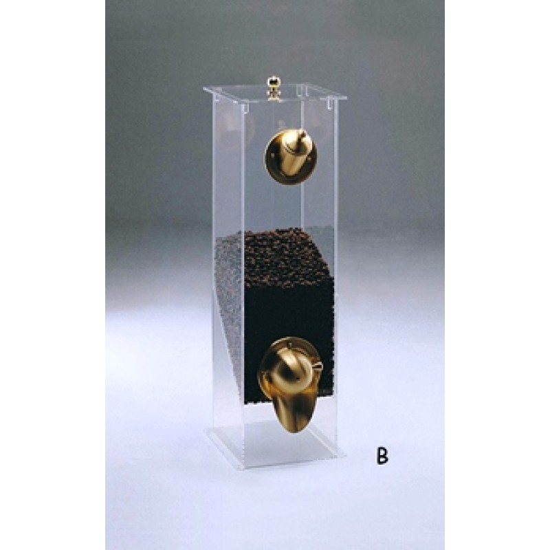 Dispenser per caffč realizzati in metacrilato trasparente cm.18x18x65H.,completi di erogatore e paletta di carico in metallo ottonato.