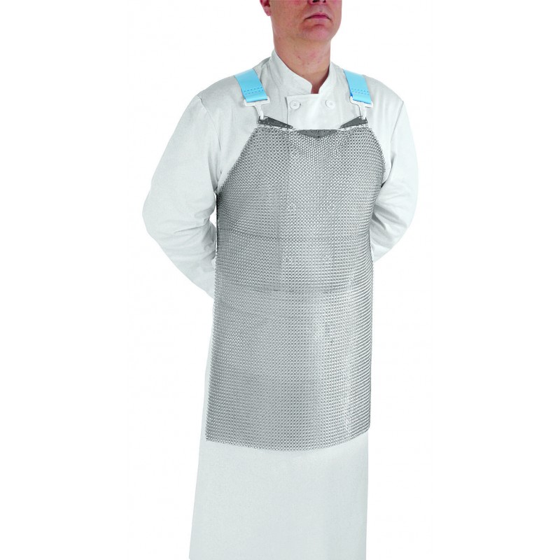 Costituito da piastrine in alluminio di dimensioni 20x19x0,8 mm, collegate da anelli in acciaio inossidabile da 1 mm. Dotato di bretelle regolabili e staccabili . Cm. 75x55 EN ISO 13998 Livello 2.