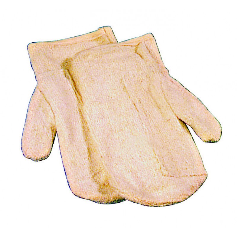 Esecuzione pesante, materiale speciale in cotone, senza amianto, colore panna, esecuzione rinforzata sulla parte interna e pollice. Cm.27x15 gr.230