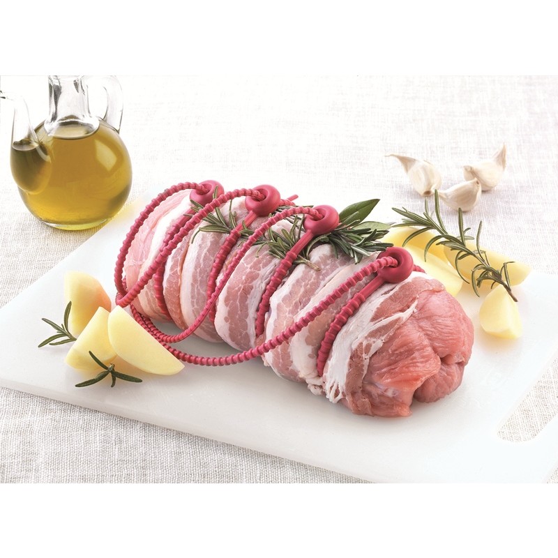 Laccetto da cucina in alternativa allo spago da cucina per chiudere o avvolgere pesce, arrosti, omelette, rotoli di carne o verdure. Realizzato in silicone alimentare al 100%, resiste a temperature comprese tra -60°C e +230°C, adattandosi pertanto al freezer, al forno tradizionale, al microonde come all'immersione in acqua bollente. Per preparare involtini di verdure o di carne da cucinare direttamente in padella. Facile da usare resistente ed igienico. Non trasmette nè assorbe odori e si lava comodamente anche in lavastoviglie. Il laccetto in silicone platinico alimentare al 100% è conforme alle normative FDA e CE, H.A.C.C.P. Ideali anche per chiudere i sacchetti alimentari!