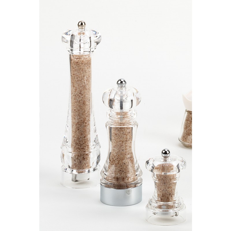 Macina sale in acrilico cm.18 con SALE AFFUMICATO DANESE. E' un sale marino, frutto di un lungo lavoro di affumicatura con legno di quercia e olmo rosso, secondo l'antica ricetta danese.Un gusto unico da accompagnare con una vasta gamma di piatti:da provare sulla pasta alla Carbonara, nelle zuppe, sulle uova e nelle frittate. Un pizzico di questo sale su salmone, trota, aringa, gli conferisce il caratteristico aroma di affumicatura.