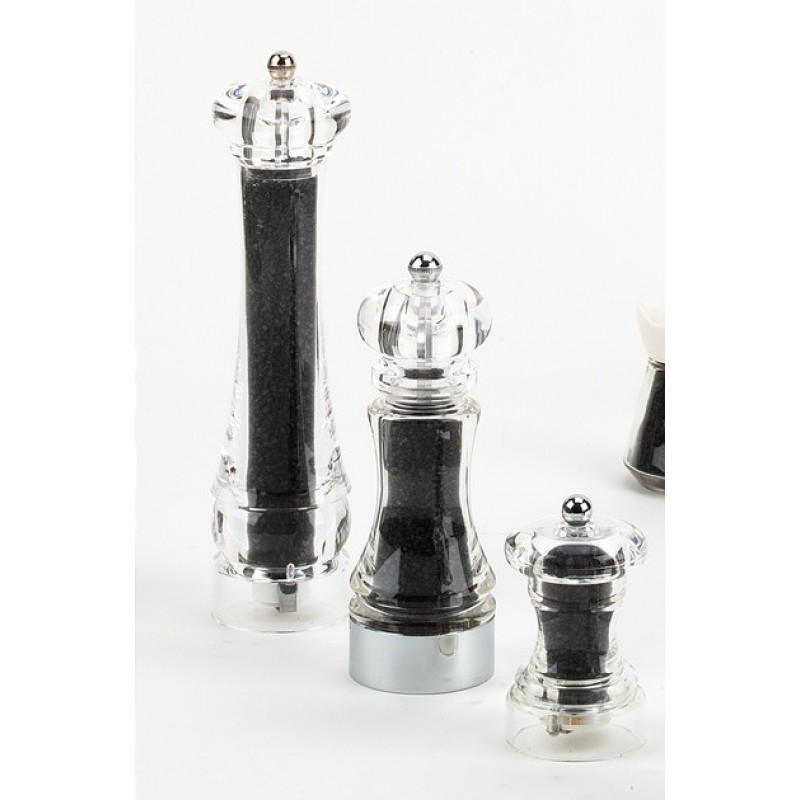 Macina sale in acrilico cm.18 con SALE NERO HAWAII,č un sale evaporato al sole delle Hawaii,in un isola di origine vulcanica.E' combinato con carbone vegetale che gli conferisce il caratteristico colore nero vellutato.Ideale per pescee bistecche alla griglia, il sushi e il sashimi.
