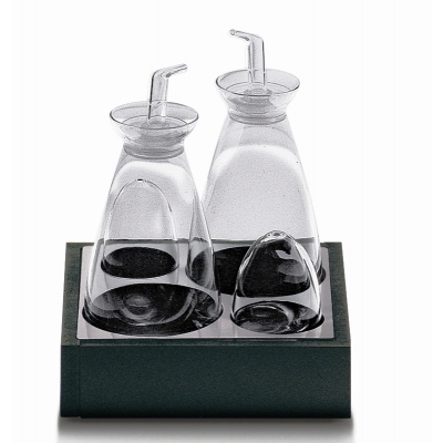 Menage 4 pz.,olio,aceto, sale e pepe.E' possibile ritirarlo nelle finiture wengè o rovere sbiancato.