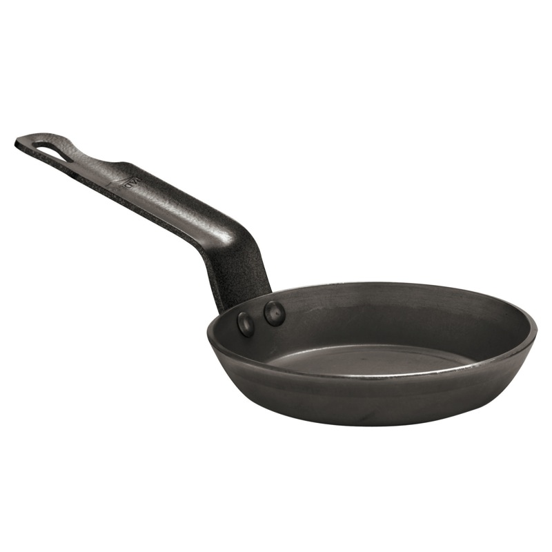 Padella di piccole dimensioni in ferro con rivestimento antiaderente, studiato e realizzato per la preparazione dei Blinis, piccole focaccine tipiche della cucina russa e simili alle crêpes, ma con la differenza che rispetto a quest'ultime, necessitano di lievitazione. (Diam. 12 h.2 cm)