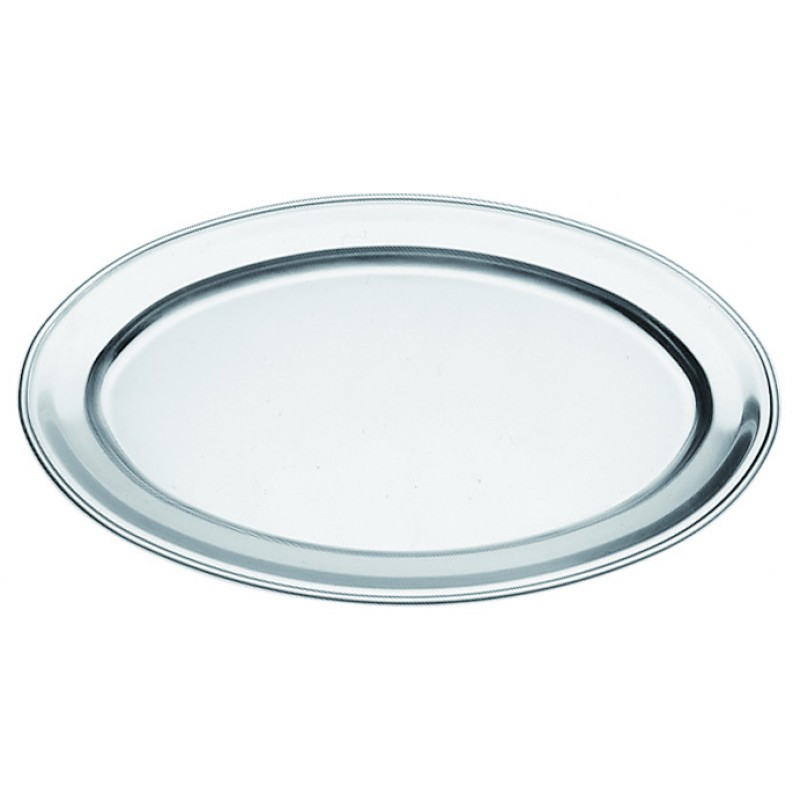 Piatto da portata ovale con bordo in acciaio inox 18/10 lucido