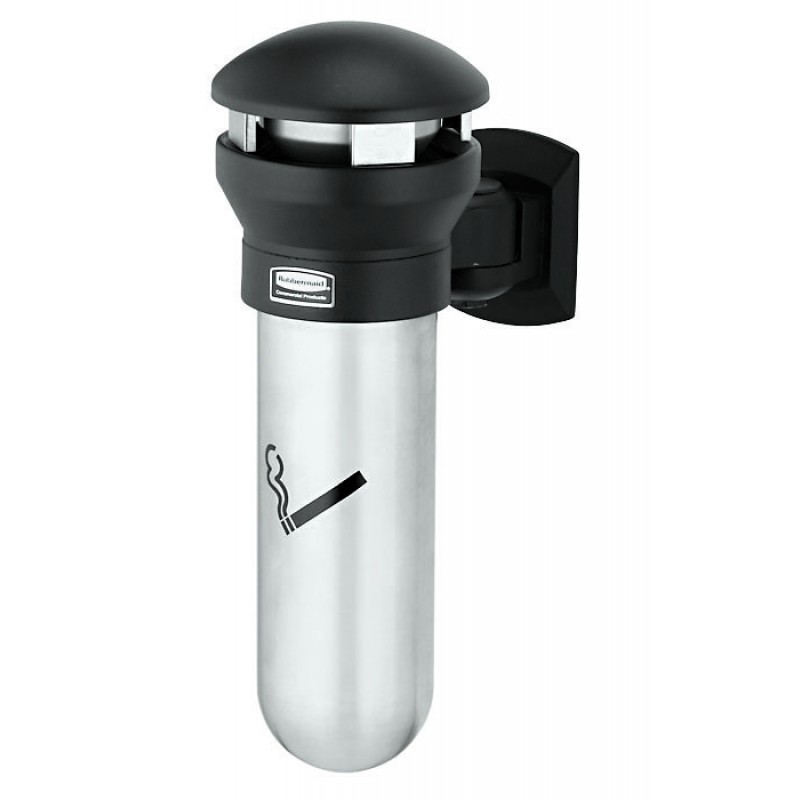Struttura in metallo, imbuto interno studiato per ridurre le ostruzioni causate dall'accumulo di mozziconi. Base zavorrata con possibilitą di ancoraggio con bulloni. Cm.30 h.45,7 lt.2,3