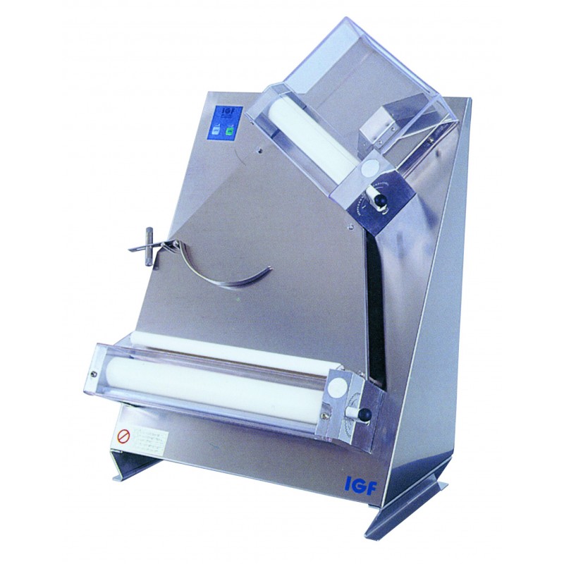 Due coppie di rulli regolabili, per una precisione millimetrica dello spessore desiderato, per ottenere un impasto tondo. - Sistema di imbocco dell?impasto sui rulli inferiori facilitato da un altro rullo a folle. - Predisposto per comando a pedale. - Protezioni rulli separate per un lavoro facile e sicuro. - Ingranaggi dei riduttori realizzati con resine speciali, stampati e non dentati, per una durata cinque volte superiore al normale. - Tastiera digitale. - Corpo interamente in acciaio (alberi portarulli compresi). - Rinforzi interni per evitare qualsiasi flessione della carcassa.