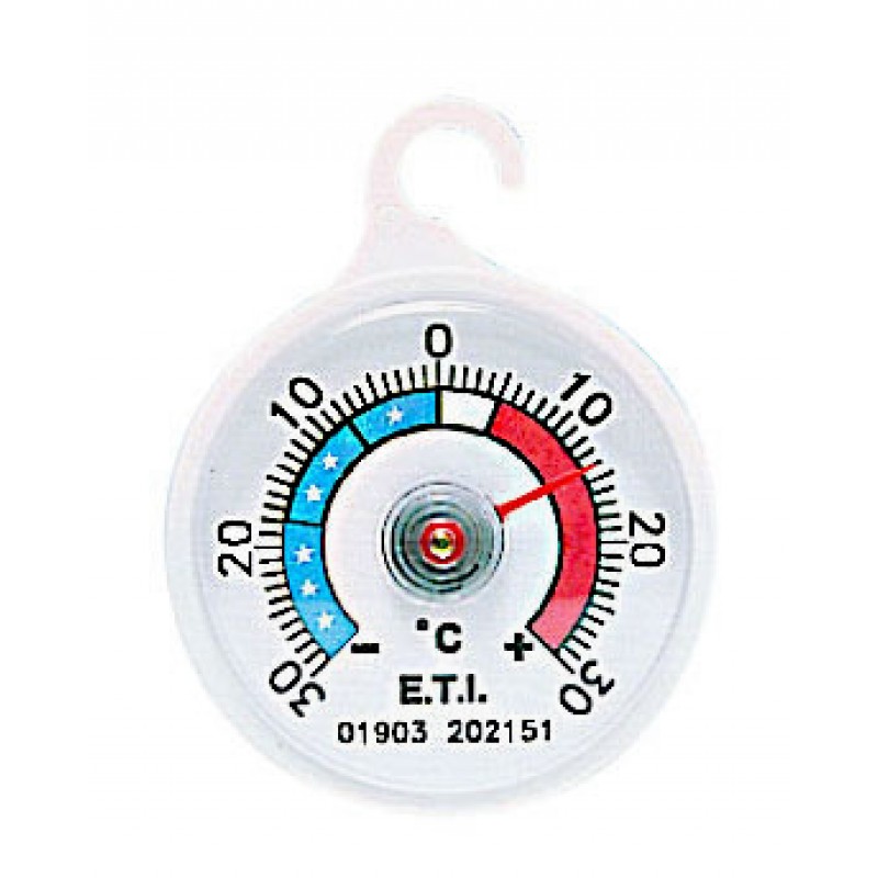 Termometro per frigo o freezer in ABS diametro 5,2 cm, scala 1°C, range -30°C +30°C.