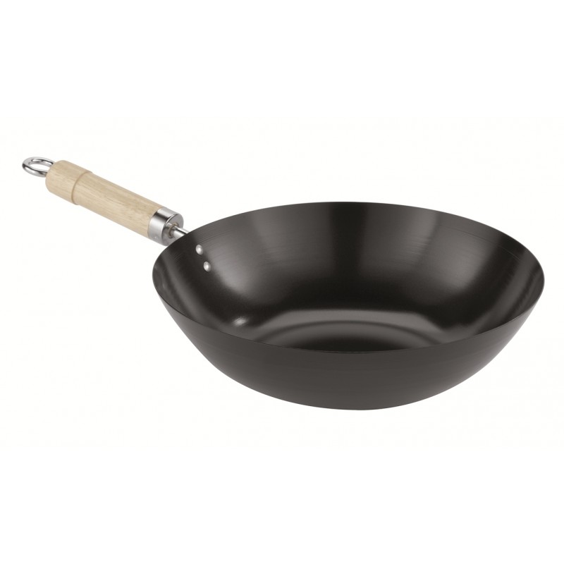 Wok a fondo piano, antiaderenti, che formano a poco a poco sulla superficie una pellicola antiaderente. Manico in legno. Assolutamente strategiche, queste stoviglie di provenienza asiatica si adattano a tutti i tipi di cottura, assecondano le nostre richieste con grande rapidità, friggono e soffriggono che è una meraviglia, si adattano a qualsiasi tipo di fornello. Anche portato in tavola il wok fa la sua figura, è scenografico e ha il vantaggio di mantenere caldo il cibo.